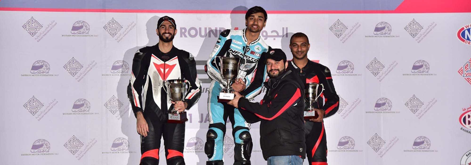 Also having twice the reason to celebrate on the day were Masoud Behbehani and Abdul Samee. Behbehani won both races in the Bahrain Superbike Championship while Samee claimed the two sprints in the Bahrain Supersport Championship (BSSP) 125.